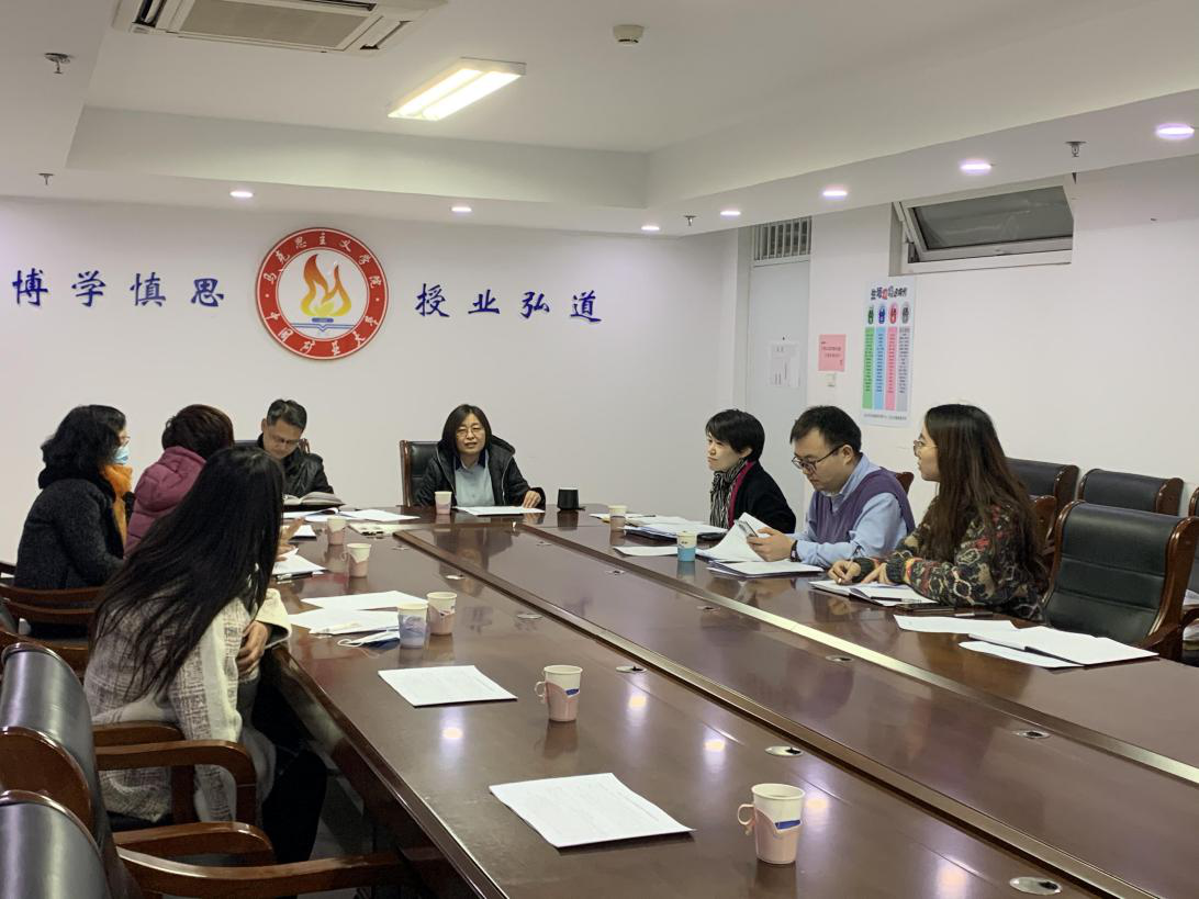 会议伊始,李妍院长领学十九届五中全会精神。她强调,中国共产党第十九届中央委员会第五次全体会议召开,对二〇三五年目标、“十四五”时期经济社会发展作出了系统谋划和战略部署,为中国特色社会主义事业的发展指明了前进方向、提供了根本遵循,为学院思政课教学、科研发展、教师工作提供了指引。学习贯彻党的十九届五中全会精神,是学院当前和今后一段时间内首要政治任务,学院将在全会精神指引下,科学编制“十四五”规划,坚持问题导向、目标导向,对照标准、找补短板,助力学院在“十四五”期间办学特色、办学水平和社会声誉上都有良好提升。