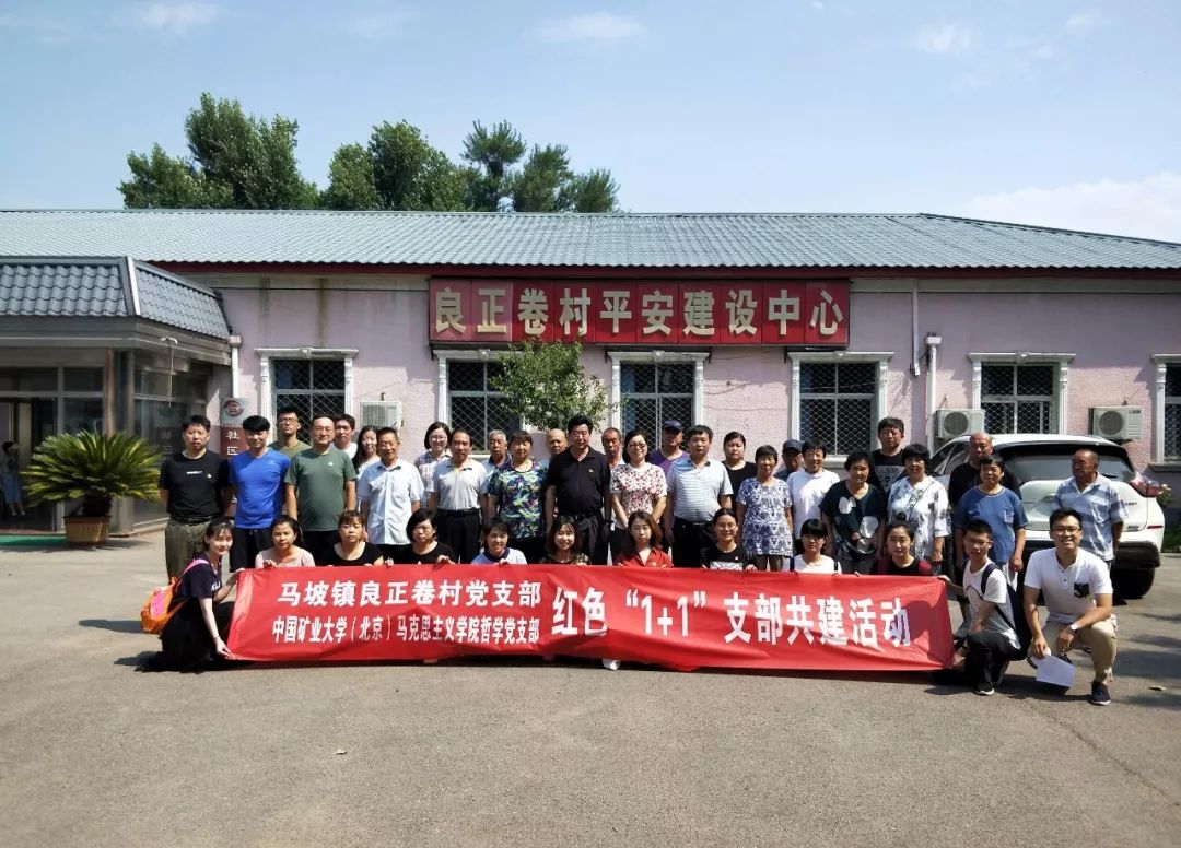 此次红色“1+1”支部共建活动的主题是“不忘初心,抉择无悔”,主要讨论的内容是:党员对党的忠诚度。首先,双方介绍各党支部情况。马坡镇良正卷村支部书记介绍良正卷村包括党员50名,哲学党支部项丽娜老师介绍学院情况,由哲学党支部书记李莉介绍支部情况。其次,由双方党员代表发言。良正卷村大学生村官首先进行发言,介绍了担任大学生村官以来的工作,党员活动以学习为主,发表了“学历高不代表能力高,责任心比能力更重要”的感悟。哲学党支部党员代表常媛媛周文琳以“青年党员如何扛好党旗”为题进行了发言,陈友德关于对党的忠诚进行了发言,介绍党的历史;回社区的在职党员指出村支部针对党员回社区活动进行了积极接洽,开展如节约用水,爱护环境等各项活动。村内老书记介绍了从1979年上任以来良正卷村的发展情况。由村支部书记进行了总结,指出要结合农村实际工作,党支部是领头羊,村干部要担起责任,加强学习,接受监督,利民惠民。最后,双方集体合影留念并重温入党誓言。