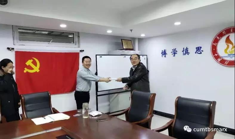 接着,李老师向志愿服务队授队旗和徽章,党支书武军秀代表服务队领取,并由苏老师向服务队授“记录本”,党支部宣传委员和纪律委员代表服务队领取。最后,党支部书记武军秀向与会人员宣读“从心出发”党员志愿服务队宣言并宣布会议结束。