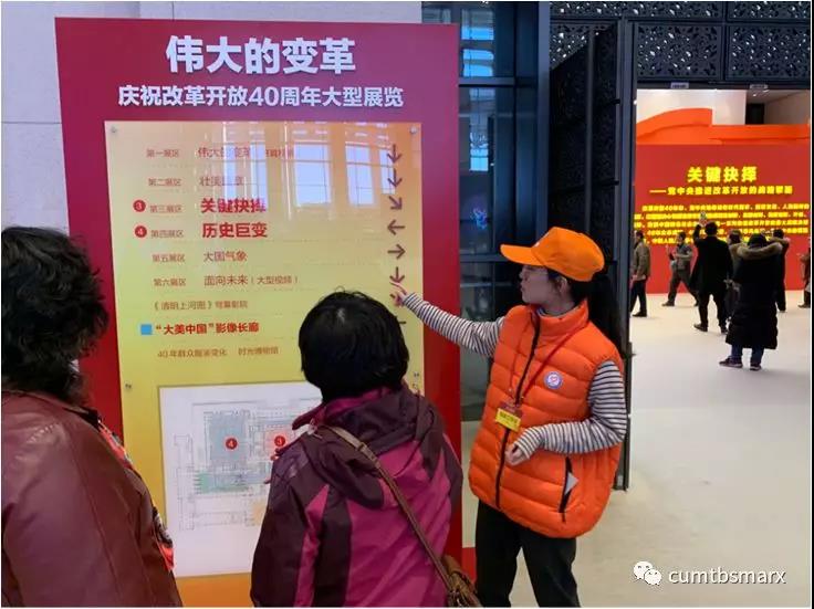 为庆祝改革开放四十周年,增强支部成员的社会责任感,弘扬奉献精神,马克思主义中国化党支部“从心出发”志愿服务队于12月4日前往国家博物馆,为“伟大的变革——庆祝改革开放40周年”大型展览开展志愿服务工作。
